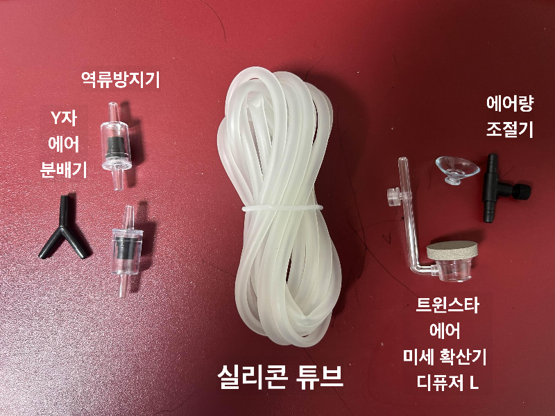 그리고 기포발생기와 디퓨저를 연결하기 위해서 '수아쿠아 실리콘 3m + 투명 역류방지기 2p + Y자 에어분배기 세트'로 되어 있는 것을 구매하였습니다. 가격은 4,500원입니다.