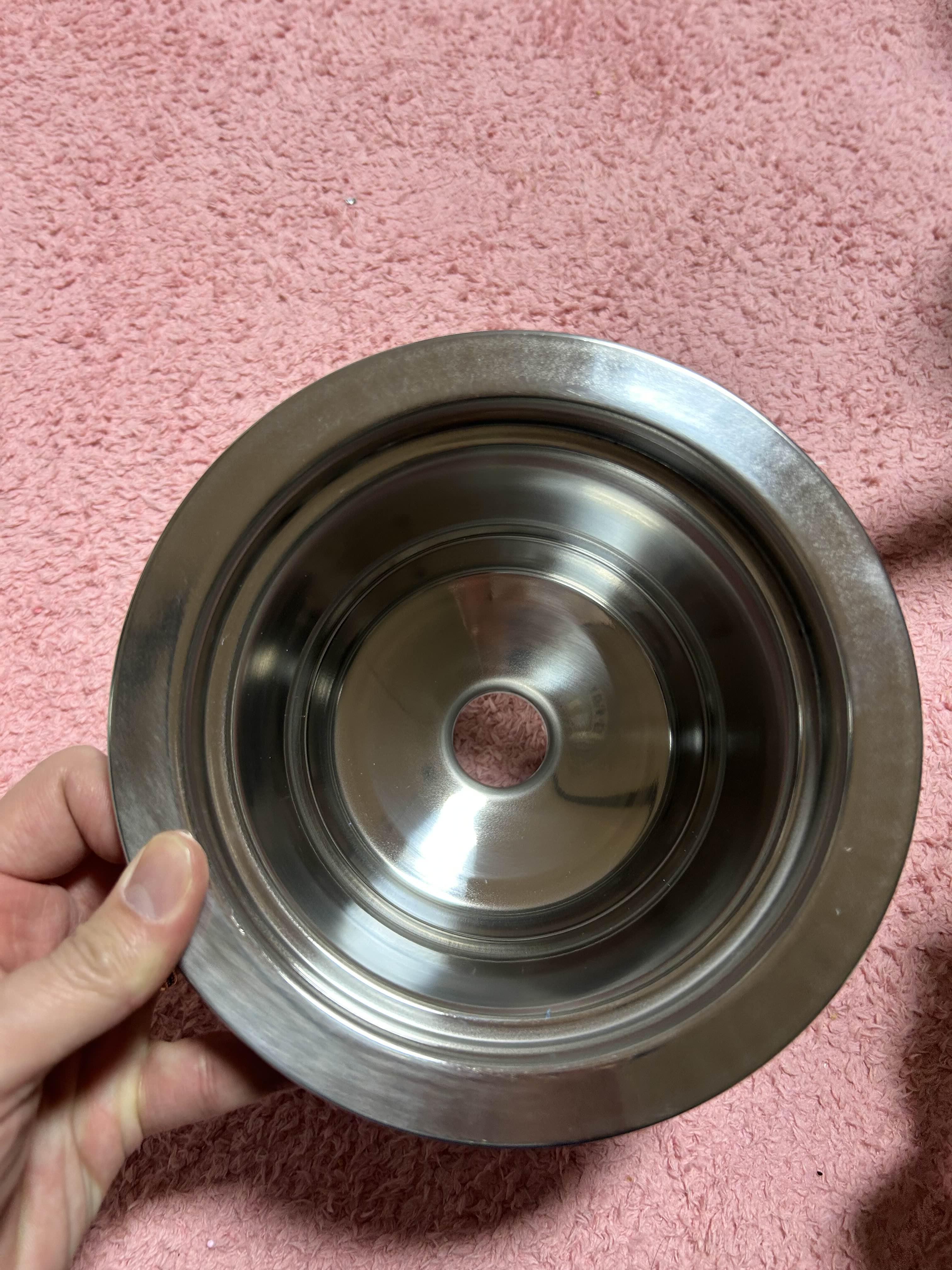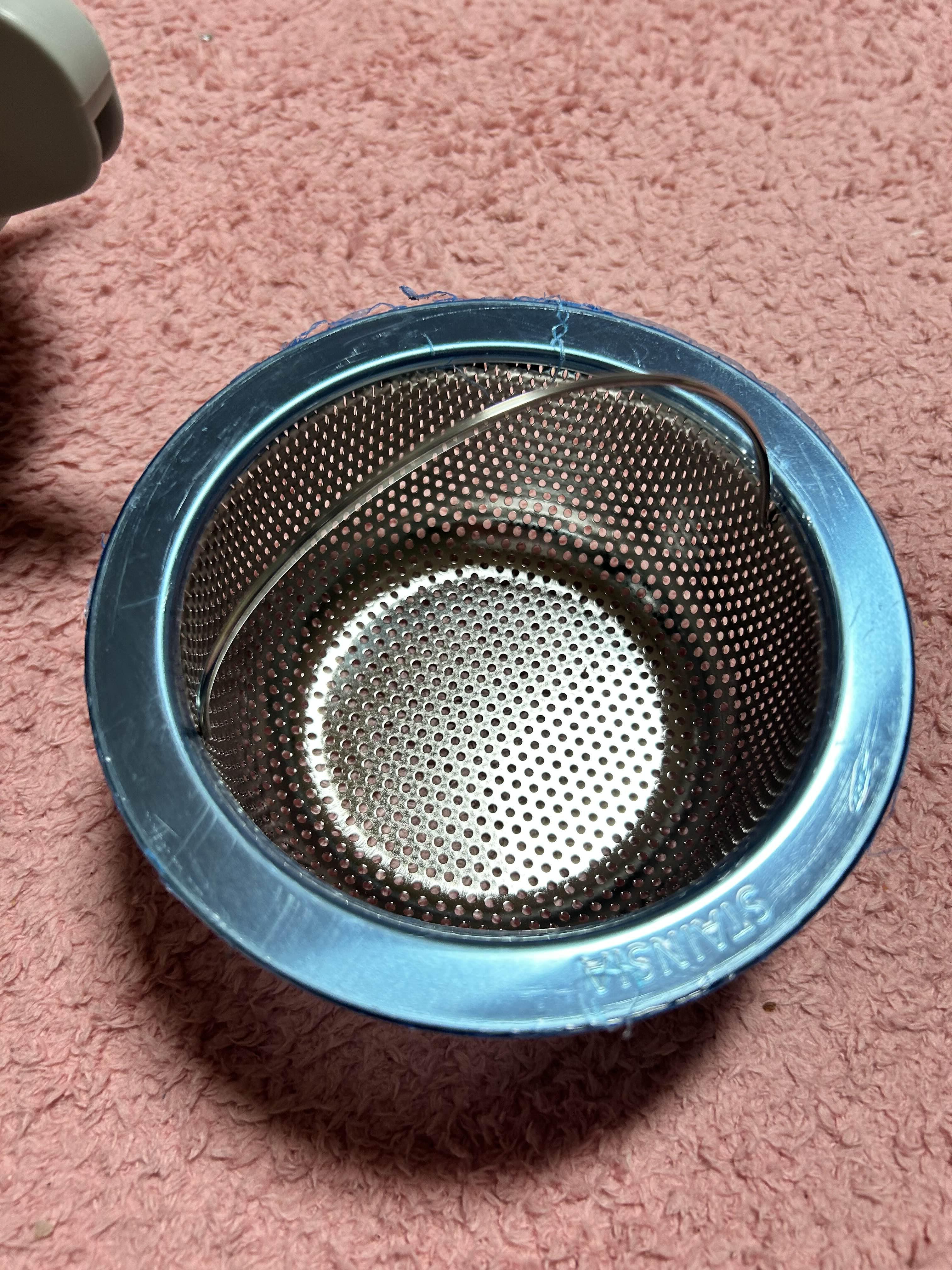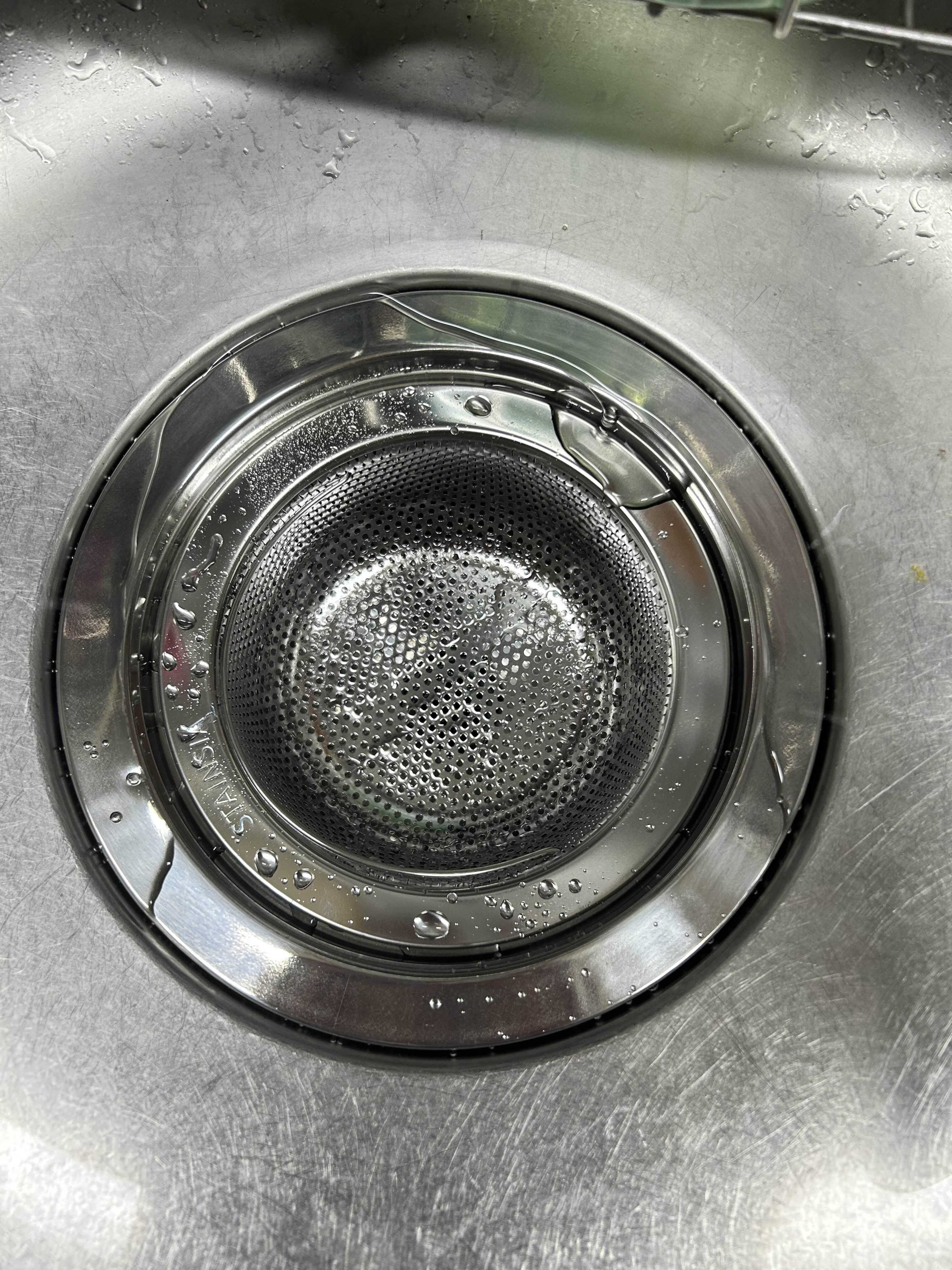 거름망의 모습입니다. 기존 거름망은 망 사이에 음식물이 끼기 좋은 구조였는데, 이번에 구입한 것은 스테인리스로 매끄럽게 빠진 모습입니다.