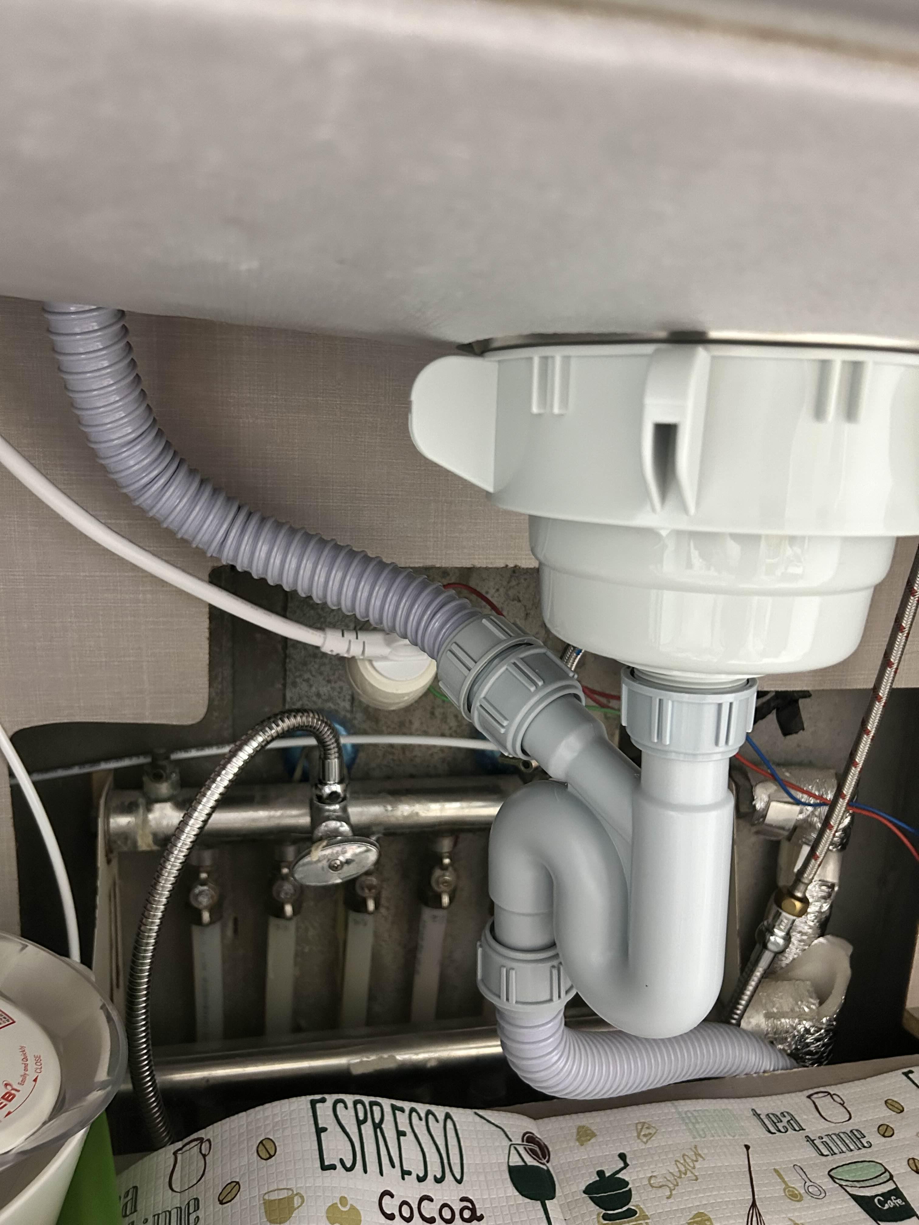 가장 먼저 할 것은 기존의 배수관을 탈거 하는 것입니다. 배수관에 물이 고여 있을 수 있으므로 충분히 말리고 탈거 하는 것이 좋습니다. 혹시 모르니 물받이도 준비하시는 것이 좋습니다.