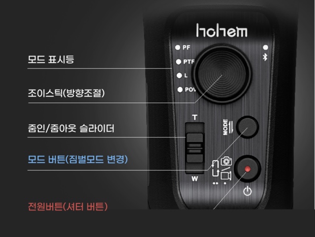 짐벌의 기능 버튼은 아래와 같이 생겼습니다.